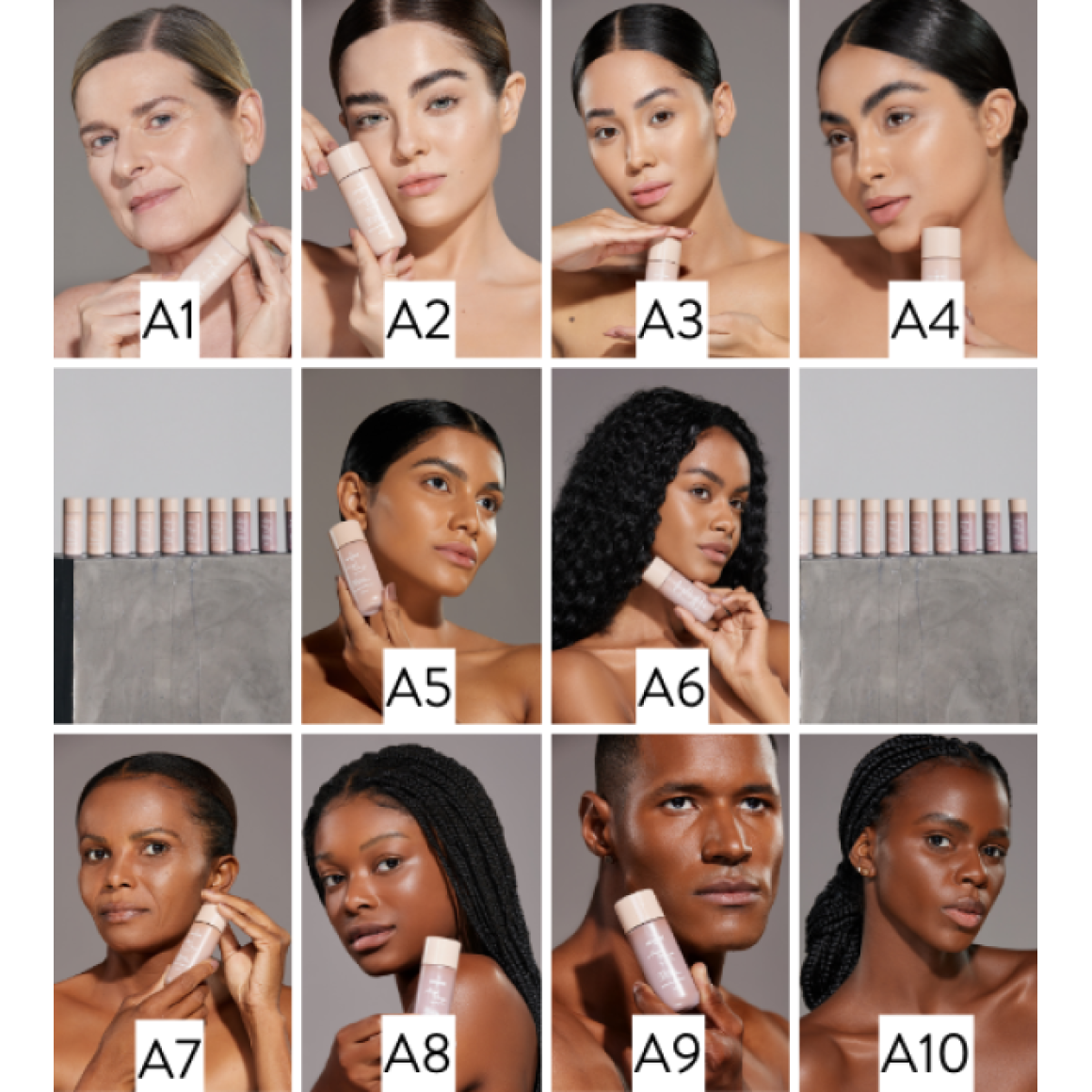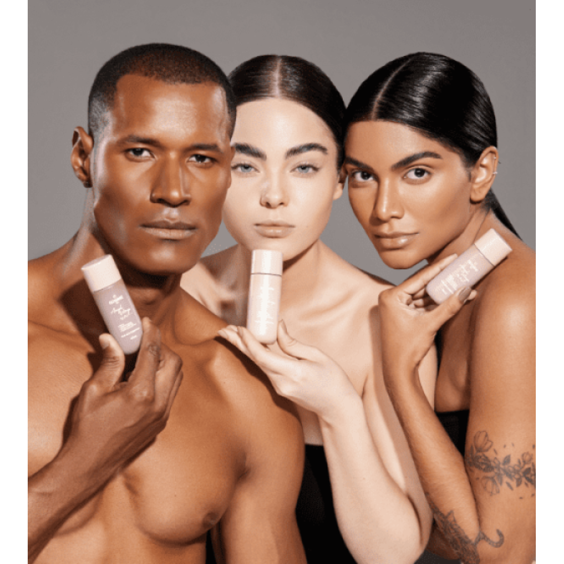 Como usar: Com a pele limpa e hidratada, aplicar a base em todo o rosto, com auxílio de pincel ou esponja, até que fique uniforme.