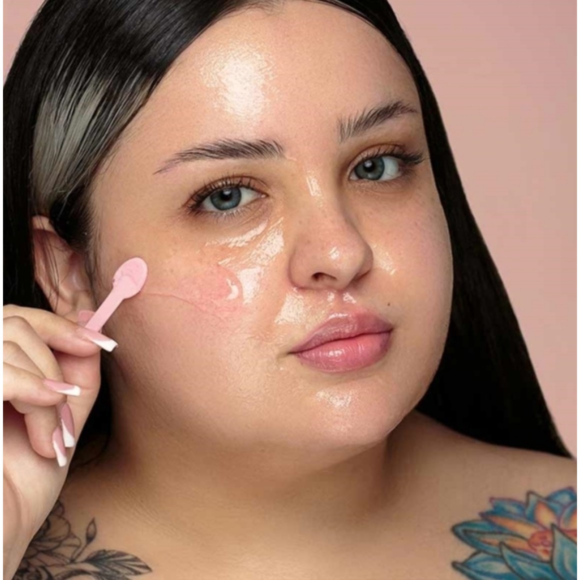 A embalagem da BT Jelly Mask conta com uma espátula, que ajuda a não contaminar o produto durante o uso e também auxilia na dosagem da quantidade da máscara que você quer aplicar.