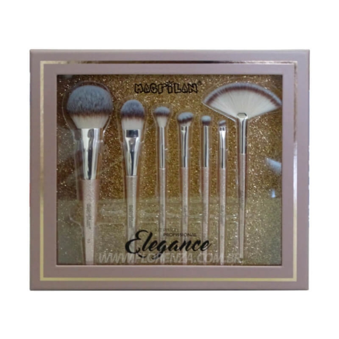 Kit com 7 Pinceis Profissional Elegance Macrilan ED700 1 unidade O Kit Pincel Profissional Elegance da Macrilan ED700 contém 7 pincéis profissionais para aplicação completa da maquiagem, tanto com produtos líquidos ou cremosos, como produtos em pó. Pincéis com cerdas super macias em formatos especiais para um acabamento suave e impecável. Pincel Profissional Oval de Precisão para Pó Pincel Profissional para Base Pincel Profissional Cônico para Esfumar Pincel Profissional Chanfrado para Sombra Pincel Profissional de Detalhes para Olhos Pincel Profissional Chanfrado para Delinear Pincel Profissional Leque Especificações Técnicas: Tamanho: médio dos pincéis 17,5 cm Composição: madeira, metal e cerdas sintéticas. Cor: Branco, Preto Cerdas: Glitter Rosê.