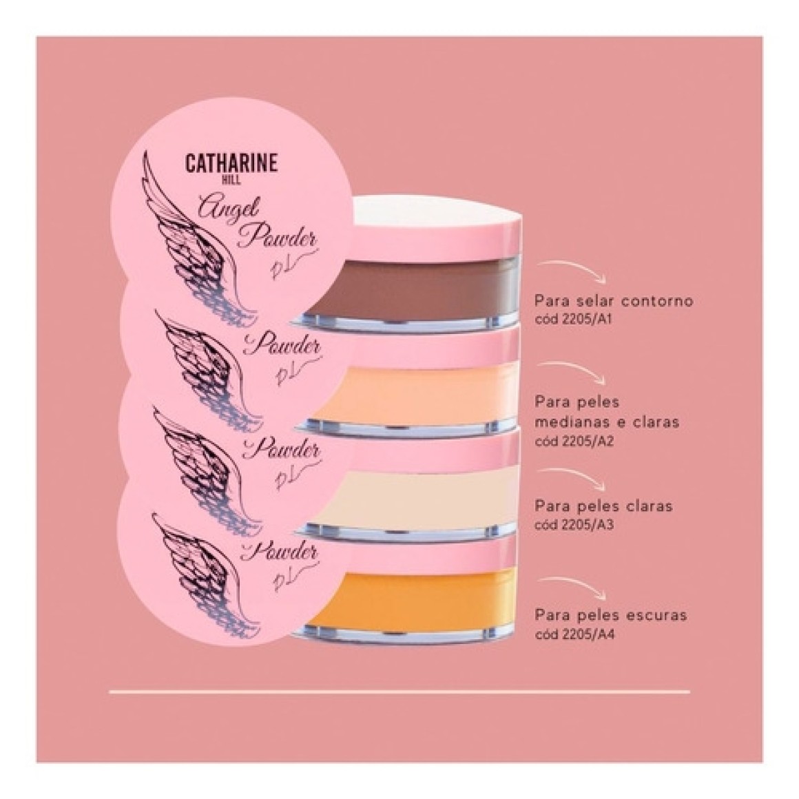- 2205/A2: para peles medianas e claras (pó na cor rosadinha)